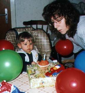 | Februar 2000 Am 4.2. feierte ich meinen ersten Geburtstag. Mama und Falk haben für mich die Küche mit ganz vielen, bunten Luftballons geschmückt. Einen Geburtstagskuchen gab es leider nicht weil ich das Wochenende bei meinem Papa verbracht habe, der mich früh morgens abgeholt hat. Aber ein Muffin mit Kerze stand auf dem Frühstückstisch und den durfte ich dann vernaschen. Irgendwie kam mir das alles etwas spanisch vor, hab nicht so recht kapiert was da jetzt los ist bei uns. | ![]() |