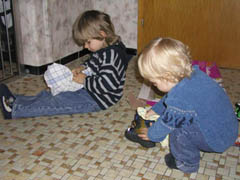 05.12. Morgen kommt der Nikolaus und deswegen müssen die Stiefel fein geputzt werden. Merlin und ich machen das mit solch einer Hingabe, dass der Nikolaus wohl nicht drumherum kommt, sie auch zu füllen. Wir werden sehen. Natürlich habe ich auch Merlins Stiefelchen noch mal ganz sauber geputzt, denn "der kann das noch nicht so richtig und er soll doch auch was vom Nikolaus kriegen!" 06.12. Tatsächlich war er da! Hat uns die Stiefel prall gefüllt und für jeden was zum Spielen dazugetan. Jetzt heisst es noch aufs Christkind warten... und das daauuuuuuuert! |