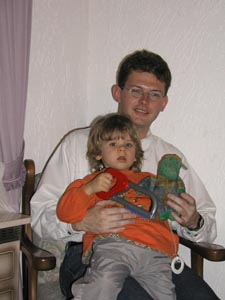 | 15.12. Schreck lass nach! Heute abend bin ich beim Ballspielen gestürzt und hab mir auf der Kante meines Lego-Eimers die oberen zwei Schneidezähne eingeschlagen. Überall war Blut. Mama und Falk sind gleich mit mir zum zahnärztlichen Notdienst gefahren und dort wurde mir der eine Zahn, der war ganz locker, gezogen. Der andere Zahn ist unauffindbar. Möglich, dass ich ihn geschluckt habe mit dem vielen Blut. Am Montag sollen wir zum Kieferröntgen, um zu sehen ob da nicht noch ein Stück Zahn drinne steckt. 17.12. Wir waren heut früh bei der Kieferchirurgin und die hat festgestellt, dass der rechte obere Schneidezahn komplett in den Kiefer hineingeschoben wurde. Er steckt also da oben drinne und ich hab ihn doch nicht verschluckt. Am Mittwoch wird geröntgt und entschieden, ob man den Zahn dort belässt, weil er bei Kleinkindern ab und zu von selber wieder herauswächst, ob er an seine alte Stelle versetzt und fixiert wird oder ob der Zahn gezogen wird. Na denn... frohes Fest! 18.12. Heute geht es mir schon wieder etwas besser. Das Gesicht ist nicht mehr allzu sehr geschwollen und ich kann schon ganz gut seitlich kauen. So gut zumindest, dass ich wieder Kekse essen kann. Alles andere tut natürlich noch weh. ;o) Mit dem Durchschlafen ist es etwas problematisch. Erstens hab ich Schmerzen und zweitens träume ich immer noch davon, wie es passiert ist. Das muss jetzt erst mal verdaut werden. 19.12. Auch diese Nacht hab ich nicht durchgeschlafen. Tut ja schon ganz schön weh. Heute hatten wir ja auch noch mal einen Termin bei der Kieferchirurgin. Die ist total nett und ich hatte nicht mehr sooooooooo grosse Angst, auch wenn ich trotzdem Tränchen in den Augen hatte. Wie es aussieht kriege ich den Zahn doch gezogen. Er ist wohl zu weit im Kiefer drinne als dass man ihn da lassen könnte. Jetzt habe ich einen OP-Termin am 3.1.2002. Mama ist es schon ganz mulmig, aber es muss wohl sein. Anfang Januar wird dann erst noch mal geguckt ob der Zahn nicht wider Erwarten doch ein Stückchen rausgewachsen ist, aber die Chancen stehen wohl sehr schlecht. Wenn es nämlich so wäre, dann könnte man auf die Operation verzichten. Na, dann drückt uns mal ganz fest die Daumen. |