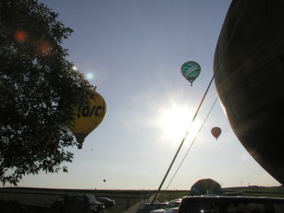 16.08. Heute war in Harxheim Weinhöfefest und wir hatten zum Glück bestes Wetter. Dort sind nämlich Heißluftballons gestartet und wir konnten nun doch mal aus nächster Nähe beobachten, wie die Luft eingeblasen wird und wie das alles so funktioniert, dass diese großen Dinger auch tatsächlich abheben. War mal ganz interessant, auch wenn ich vor dem Geräusch des Brenners etwas Angst hatte.