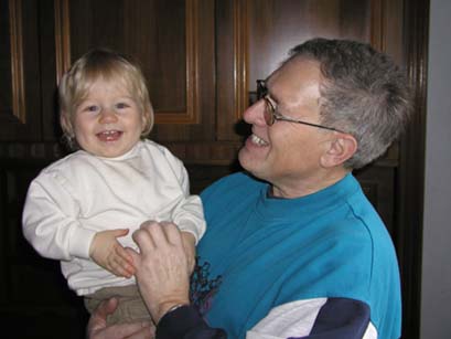 November 2001 Jetzt fange ich langsam an zu sprechen. "Mama", "Baba", " Ichd" (Licht), "Gaga" (Ente)... das kann ich jetzt schon. Zur Zeit grinse ich mit meinen sechs Zähnchen in die Welt. Da tut sich momentan aber nicht mehr viel auch wenn ich triefe wie ein Kieslaster. 24.11. Irgendwas hab ich mir eingefangen. Gegen Abend bekam ich erhöhte Temperatur und in der Nacht hab ich kaum geschlafen. Meine Nase läuft auch ganz gewaltig und ich fühle mich total matt. 25.11. Heute nacht um halb eins hat Dani´s Papa meinen Bruder heim gebracht weil auch er hohes Fieber hatte. Ohje... was da wohl im Anmarsch ist? Jedenfalls geht es uns beiden ziemlich schlecht und Mama hat alle Hände voll zu tun, um uns beiden gerecht zu werden. 26.11 Jetzt geht es mir ein kleines bisschen besser. Ich esse zwar nichts, hab wohl auch schon abgenommen, aber ich spiele zumindest einmal wieder. 27.11. Die ganze Nacht hab ich geweint. Mama meint, es läge wohl daran, dass ich tagsüber so viel geschlafen habe und nun nicht im Bett liegen bleiben will. Über Tag war ich aber wieder so gut drauf, dass Mama meinte, es wäre wieder besser. Also waren wir nicht beim Kinderarzt. 28.11. Und wieder eine schlaflose Nacht. Ich habe Schmerzen, wenn man mich an den Ohren berührt, also waren wir heute abend beim Notdienst zur Untersuchung. Nun muss ich Penicillin nehmen und hab Nasentropfen bekommen. 29.11. Durch die Penicillineinnahme geht es mir bedeutend besser. Die Nasentröpfchen mag ich gar nicht und schreie wie am Spiess wenn Mama sie mir einträufelt. Aber ich fühle mich wohl, spiele, lache... bin also auf dem Weg der Besserung.