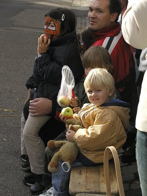 zu sich zu nehmen (der Wein ist natürlich für die Erwachsenen) und gemeinsam die bunt geschmückten Festwagen zu