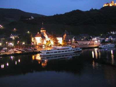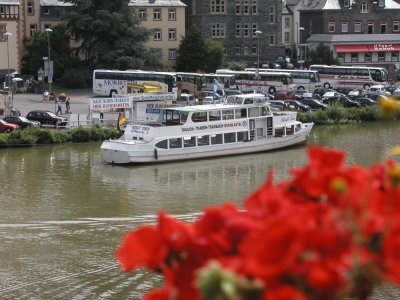 | 09.08. Heute sind Mama, Falk, Merlin und ich kurzfristig übers Wochenende nach Bernkastel-Kues gefahren. Eine Unterkunft in Bernkastel-Wehlen haben wir glücklicherweise noch ergattern können. Eigentlich sind wir ausgerechnet dort hin weil in Bernkastel Ballonfahrer - Meeting war und Mama und Falk uns Kindern mal diese Heißluftballons aus der Nähe zeigen wollten. Leider war heute das Wetter aber nicht so rosig und deshalb konnten die Ballons nicht fahren. So haben wir einen schönen Bummel durch die Gassen der Altstadt gemacht und uns so die Zeit verduldet. 10.08. Der Tag ist total schön gewesen. Sonne, Sonne, Sonne. So konnten wir mit dem Schiff eine Rundfahrt auf der Mosel machen und Merlin und ich fanden es richtig toll. Abends um 18:00 Uhr sollten wieder Ballons starten, wir sind da auch hingefahren, aber bis dahin hatten sich schon wieder die Regenwolken breit gemacht und es fing an zu nieseln. War also wieder nix mit Ballons, dafür ein undefinierbares Schnulzen-Getütel aus irgendwelchen Lautsprechern und Tanz im Festzelt. Das wollten sich unsere Eltern dann doch nicht antun. Eigentlich wäre um halb elf noch ein Höhenfeuerwerk gewesen, aber da Merlin und ich ziemlich müde und geschlaucht waren sind wir dann doch lieber wieder in unser Domizil gefahren und haben uns in die Nester gelegt und geschlafen. War ein langer Tag. |