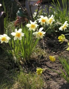 03.04.2002 Heute hat Dorothée die Acidanthera gesetzt. Bin mal gespannt ob und wann die kommen und ob sie in diesem Jahr schon alle blühen. Zur Zeit sieht es im Garten ja richtig bunt aus. Rot, gelb, weiss, lila... einfach schön.