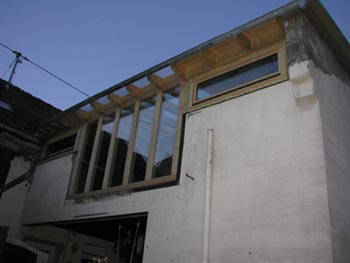 19.12.2001 Hurraaaaaaaaa...! Der Dachdecker ist soweit, dass wir das Gerüst abbauen lassen können. Doro hat gleich mal bei der Gerüstbaufirma angerufen und Bescheid gesagt. Nachmittags wurde es bereits abgeholt, wenn wir auch gar nicht damit gerechnet haben, dass es so schnell geht. Da auf dem Gerüst noch ein paar Ziegeln lagen, wurde rumgemurrt und Doro hat dann auch gemeint, dass sie nicht davon ausgehen konnte, dass die heute schon kommen zum abbauen. "Wir sind halt von der schnellen Sorte" war die Antwort. Darauf erwiderte Doro: "Wären sie damals so schnell gewesen, als es um den Aufbau ging, bräuchte das Ding schon lange nicht mehr hier stehen. Es hat uns um Wochen zurückgeschmissen, dass das Gerüst um acht Tage zu spät kam, guter Mann!" Na egal, zumindest haben wir wenigstens zu Weihnachten das Ding nicht mehr da rumstehen und man hat jetzt endlich mal wieder etwas mehr Platz im Garten. Ausserdem ist jetzt auch endlich der Blick auf den Wintergarten frei.